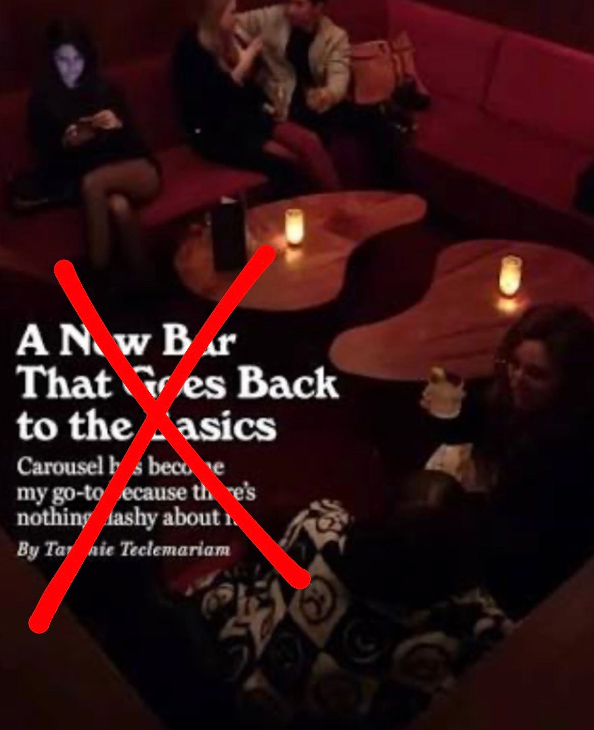 One kind of place I especially avoid—I can’t with a wine bar. It looks too nice to be in. I need a little bit of grime, I need to feel okay if I spill something on the floor instead of being like, oh no! It seems like so many of those places have popped up out of nowhere. All these damn places are natural wine bars. I just wanna hang, or dance on the dance floor, like when Hart Bar had the disco DJ.